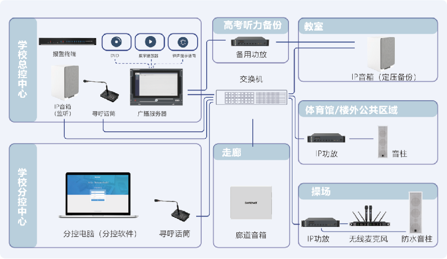 系統(tǒng)可與消防報警系統(tǒng)無縫連接,實現(xiàn)廣播消防報警。